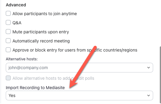 Please note: If you already have a Zoom recording, follow the process below. However, if you know that you would like a Zoom recording uploaded to Mediasite, when you schedule the Zoom meeting, under the Advanced settings, select "Yes" under Import Recording to Mediasite. Your Zoom recording will automatically load to your MyMediasite.
