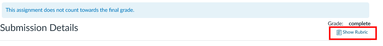 Step 3: On the Submission Details page, click the Show Rubric button in the upper right.