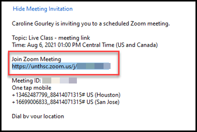From your list of Upcoming meetings, select Show Meeting Invitation: