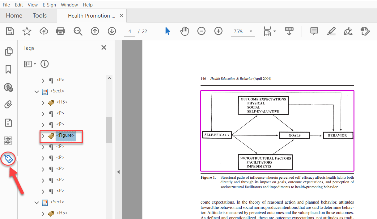 Open your PDF. Select View > Show/Hide > Navigation Panes and select the Tags option from the list. This will open the Tags Tree.